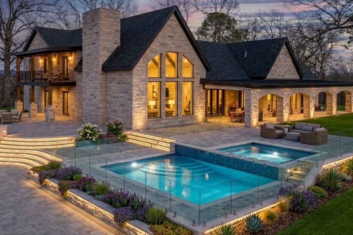 • Expansive outdoor living space, grand outdoor fireplace, patio and outdoor kitchen